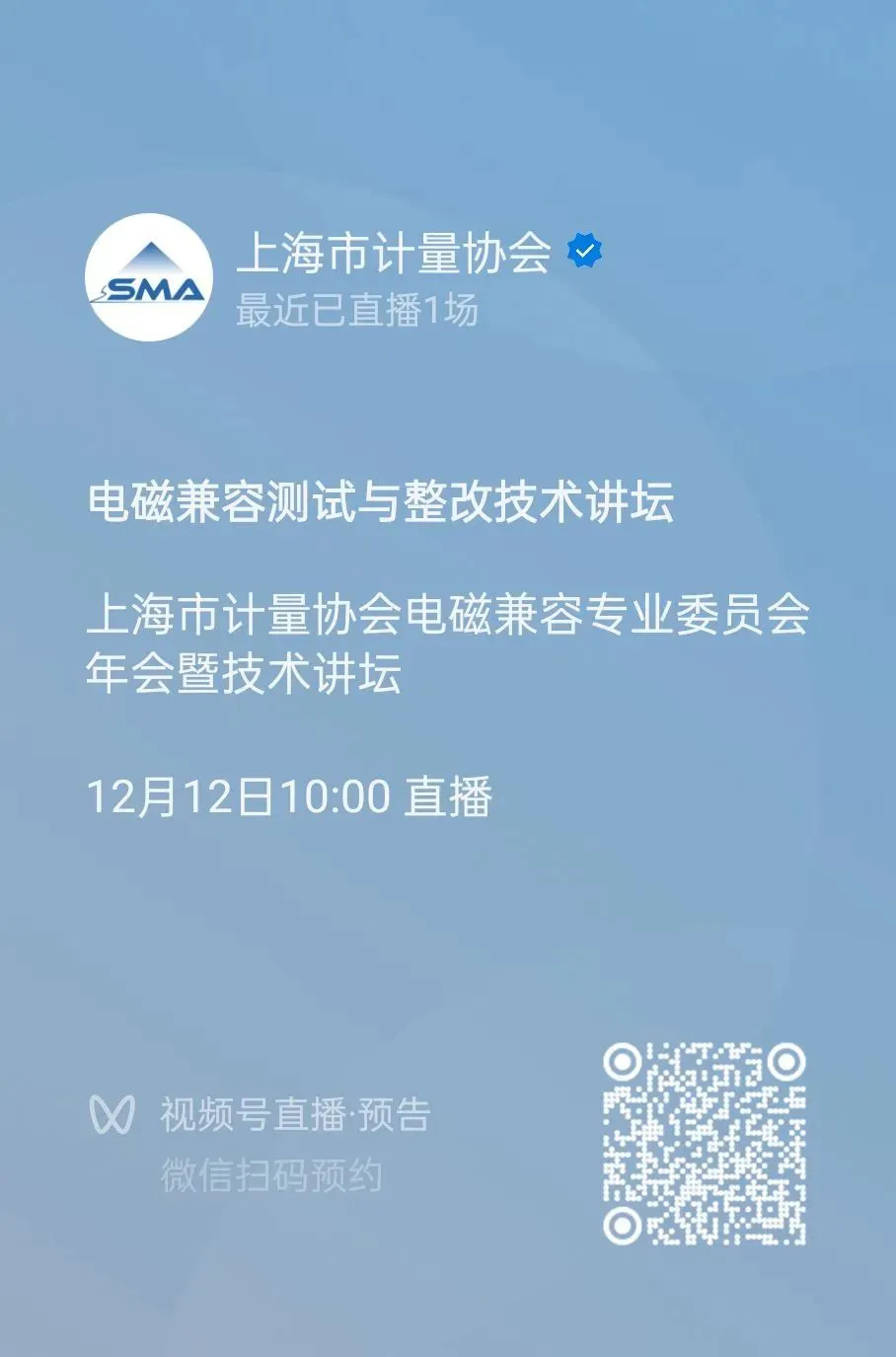 电磁兼容性(EMC)直接关乎电子电气产品的安全可靠运行,其测试是确保产品质量安全的重要环节。为交流行业干货技术,搭建技术研究与产品研发之间的桥梁,上海市计量协会电磁兼容专业委员会立足上海、面向长三角、辐射全国,通过线上直播就电磁兼容领域的热点话题开展技术交流,着力聚焦前沿理念,深入分享实际案例与操作方法。精彩内容不容错过,诚邀大家观看~