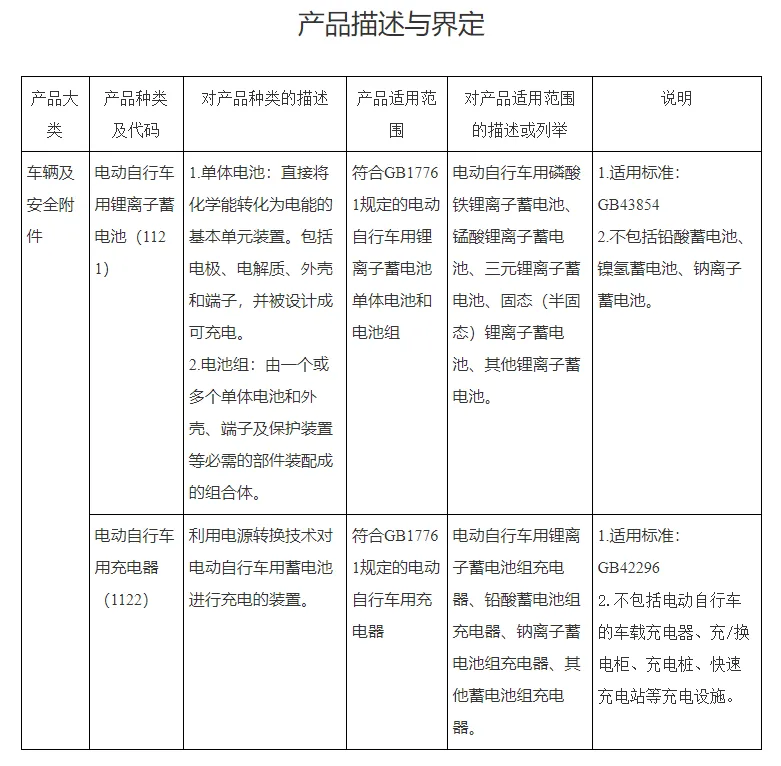根据《中华人民共和国认证认可条例》有关规定,市场监管总局决定对电动自行车用锂离子蓄电池、电动自行车用充电器实施强制性产品认证(CCC认证)管理,现将有关要求公告如下: