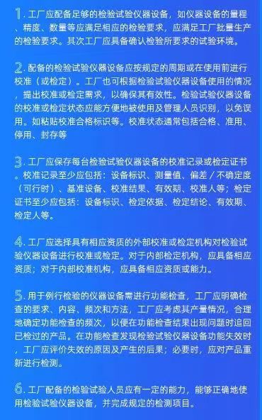 2.CCC确认检验的频次不应超过一年,确认检验至少应覆盖到不同的工厂界定码。若确认检验由工厂自行实施,工厂应提供书面和实物等证据,证实工厂具备足够的检验能力;若确认检验由工厂委托外部机构实施,工厂至少应保留外部机构的认可证明。