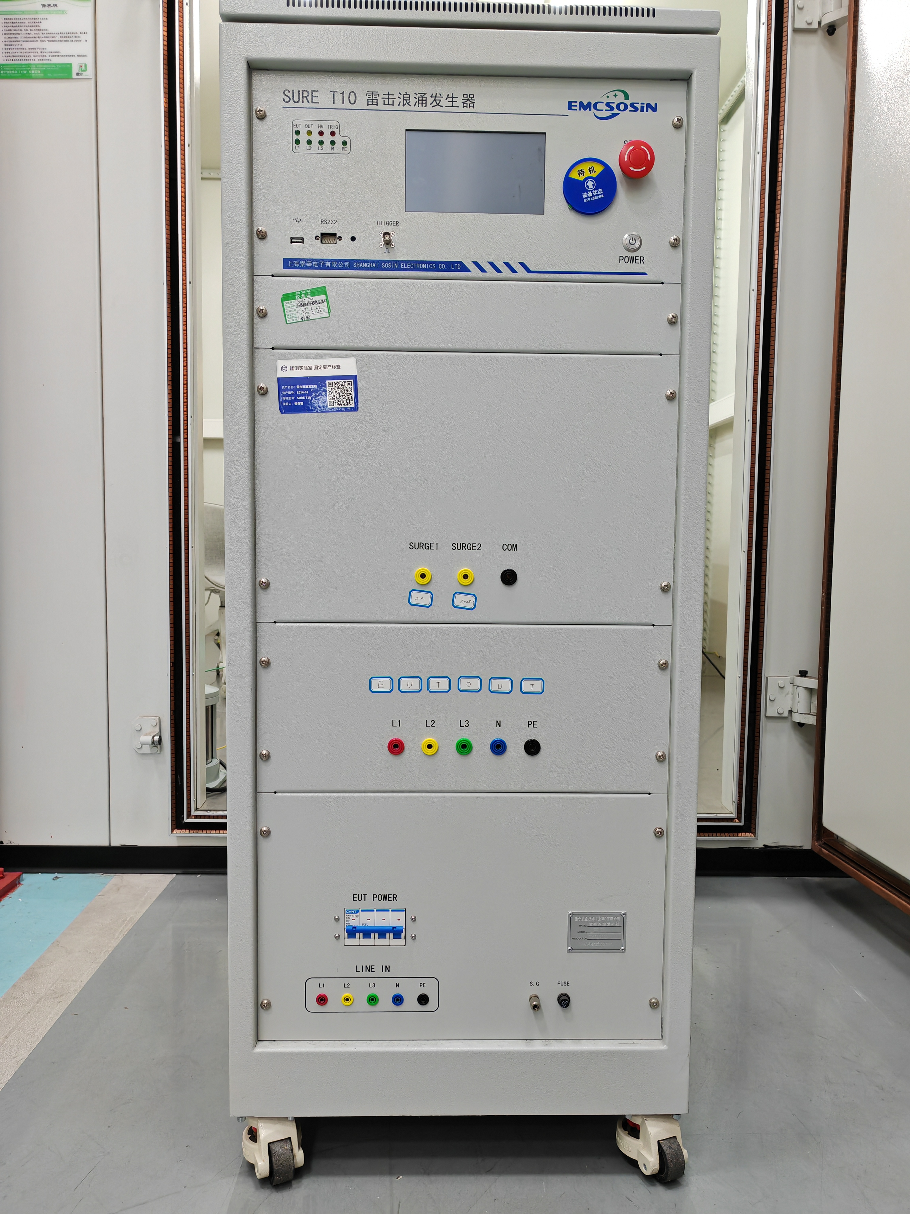 EMC浪涌试验包含电源端测试和信号端测试,隆测检测提供浪涌(冲击)抗扰度测试服务,模拟自然界雷击或者电网中接入大容性负载时所产生的脉冲对设备的影响。