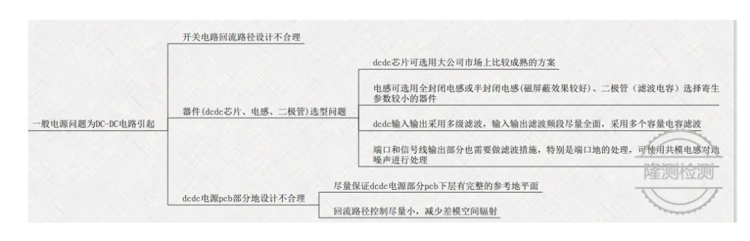 开关电源:①电源开关环路回流路径控制尽量小,减少差模空间辐射。②电源初级RCD吸收电路参数设置合理,可测开关波形进行整改 。③电源次级滤波 。④开关管PWM线上串电阻流限 。⑤开关管对地加RC吸收 。⑥选取寄生参数较小的器件。