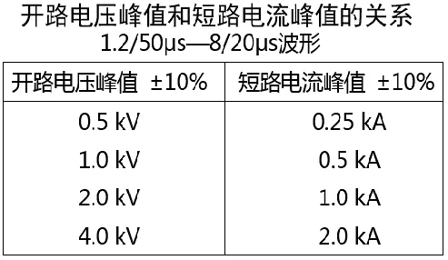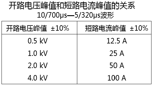 对于不同场合使用的产品及产品的不同端口,由于相应的浪涌(冲击)瞬态波形各不相同,因此对应模拟信号发生器的参数也不相同。