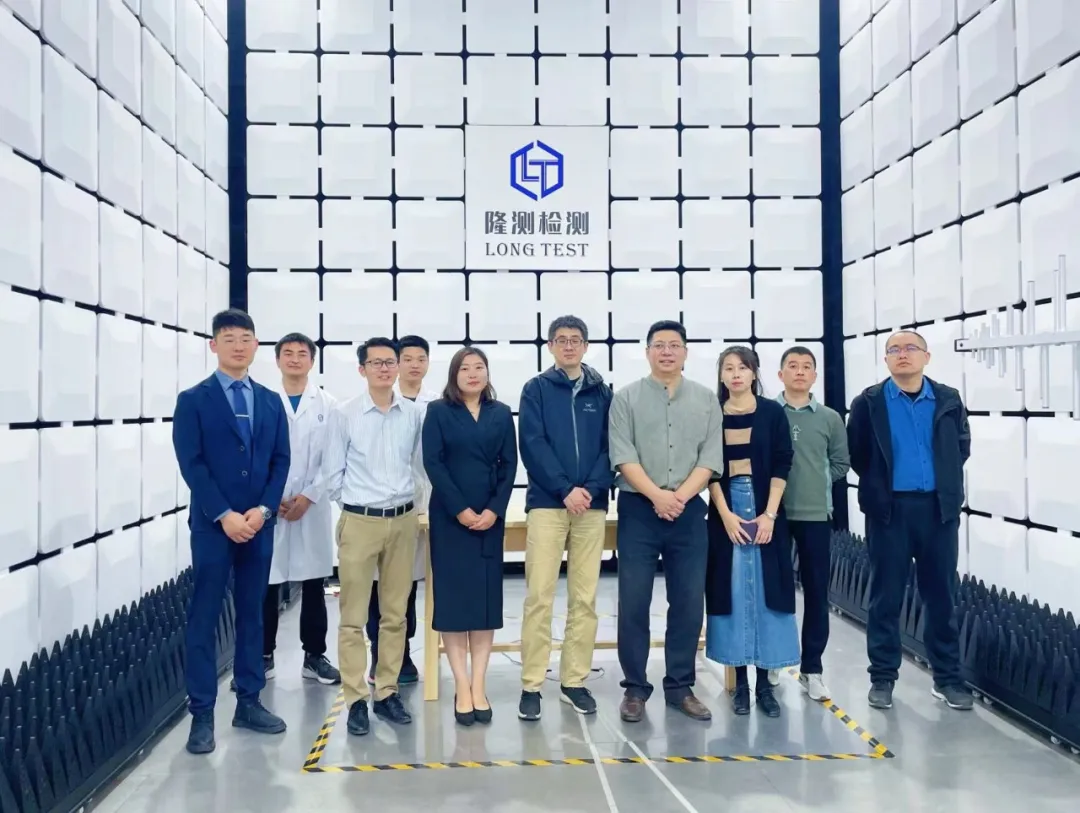 图为昆山叡辅智能科技有限公司的杜承鸿杜总携公司骨干、上海隆测领导李芳芳、王涛和隆测实验室测试工程师,双方就EMC测试项目合作展开了热烈探讨。