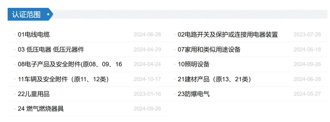 CCC认证范围