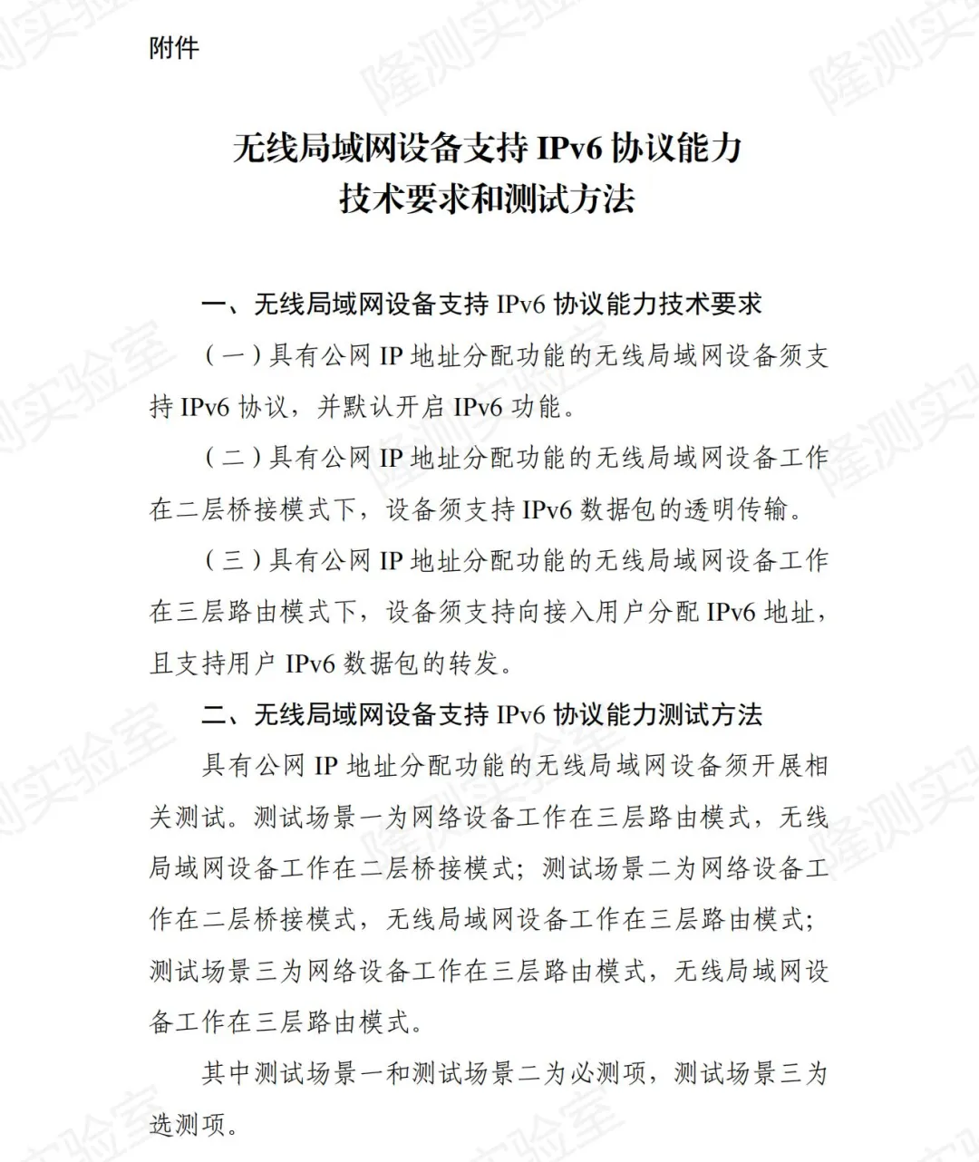 附件:无线局域网设备支持IPv6协议能力技术要求和测试方法