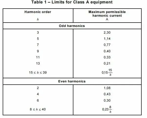 输入电流的各次谐波不应超过Class A表给出值的1.5倍。