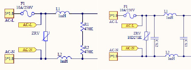 ●X电容作用﹕抑制差模干扰,电容值愈大对低频干扰效果愈佳。