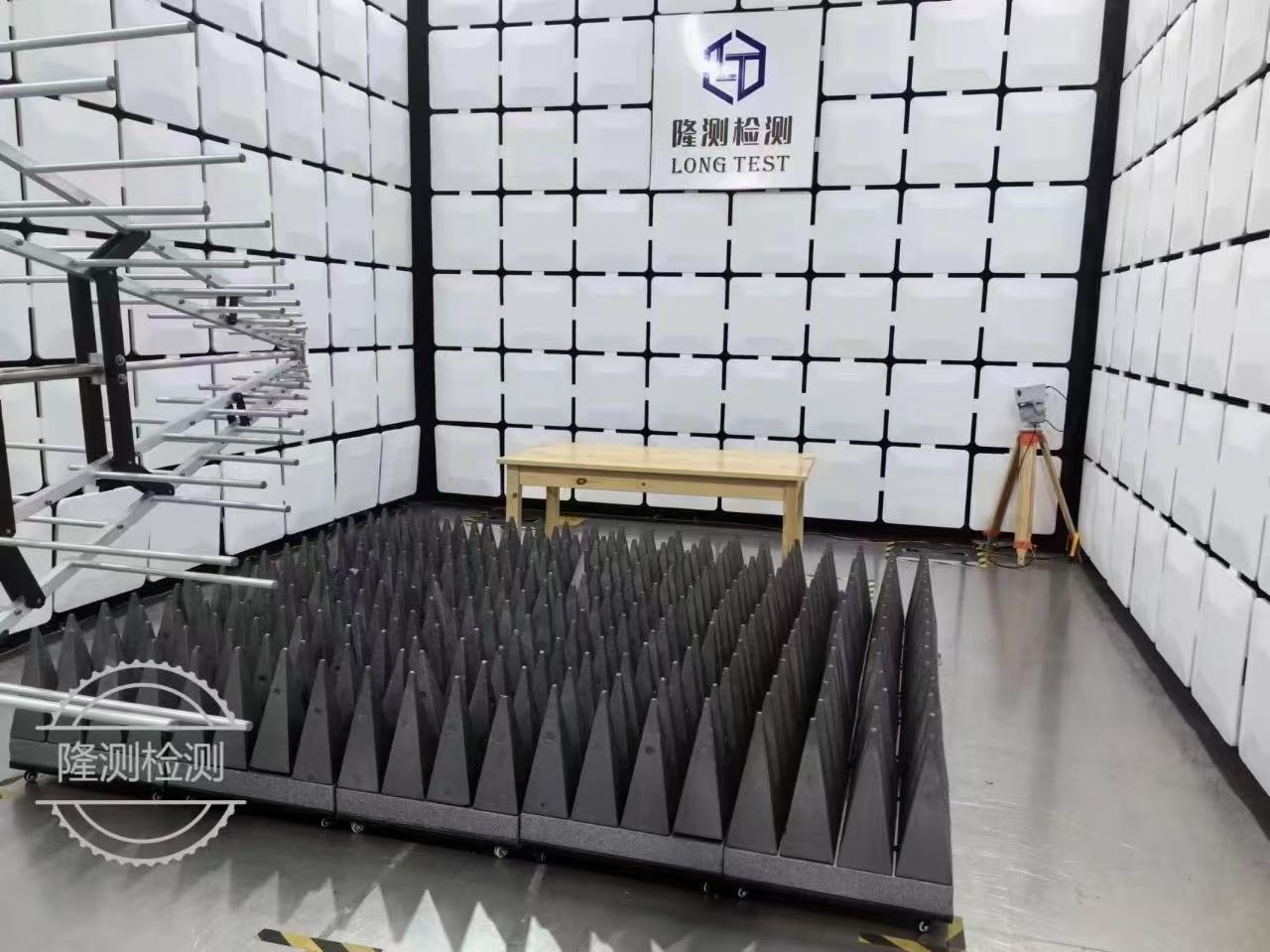 第二个暗室(Chamber2)长 9m*宽6m*高6m 规格,俗称966。是一个标准966的3m 半电波暗室,它可以作为半电波也可以作为全电波暗室使用 当地面铺上吸波材料时候,作为全电波暗室,我们用于测试辐射抗扰度项目使用。当我们移开下面的吸波材料,这个时候作为半电波暗室,使用用途就和Chamber1的用途一样了。这个暗室可以做辐射发射及其辐射抗扰度测试,这个暗室的辐射抗扰度天线是80MHz-6GHz 配置,目前能满足300A 电流的设备测试。对于空间辐射、通过空间传播的抗干扰对空间有特殊要求,因此需要在暗室内进行,模拟空旷场地的空间。对比如传导骚扰、浪涌测试、群脉冲测试等都是通过导线上进行的,一般只需要在屏蔽室内进行就够了。
