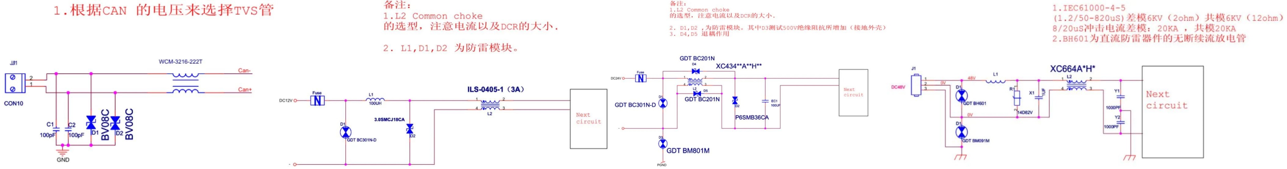 ·CAN接口EMC设计标准电路 +DC12V接口EMC设计标准电路 +DC24V接口EMC设计标准电路 +DC48接口EMC设计标准电路
