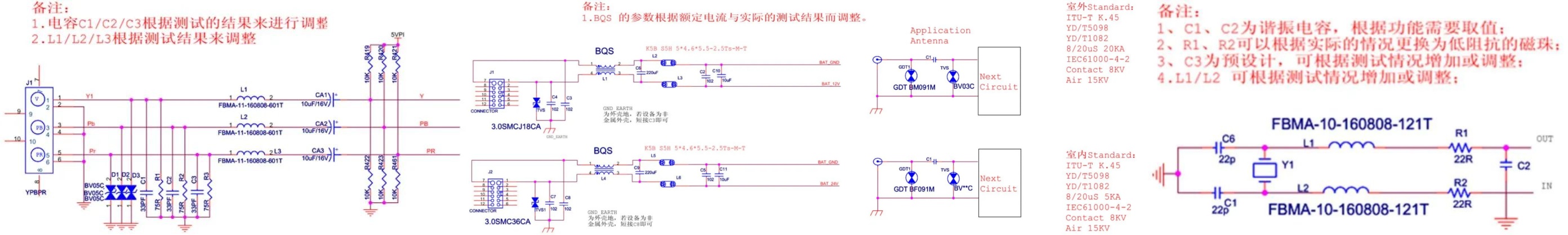 · 复合视频接口EMC设计标准电路 +汽车零部件电源口EMC标准设计电路 +室内外天馈浪涌设计标准电路 +无源晶振EMC设计标准电路