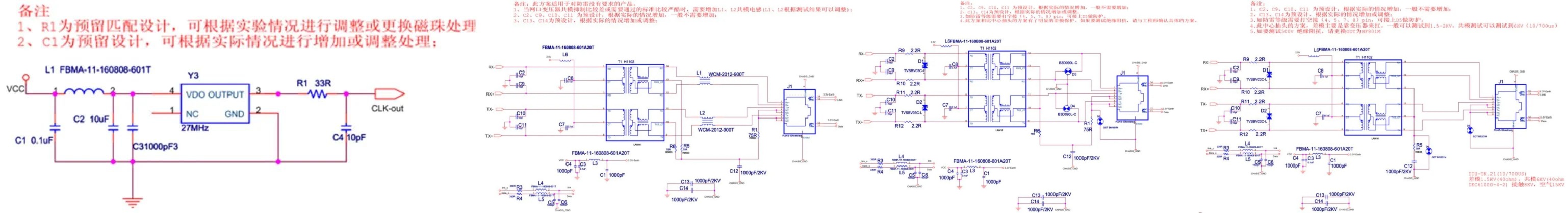 · 有源晶振EMC设计标准电路 +以太网EMC(EMI)设计标准电路 +以太网EMC(浪涌)设计标准电路(差模要求较高方案)+以太网EMC(浪涌)中心抽头方案(节约空间)